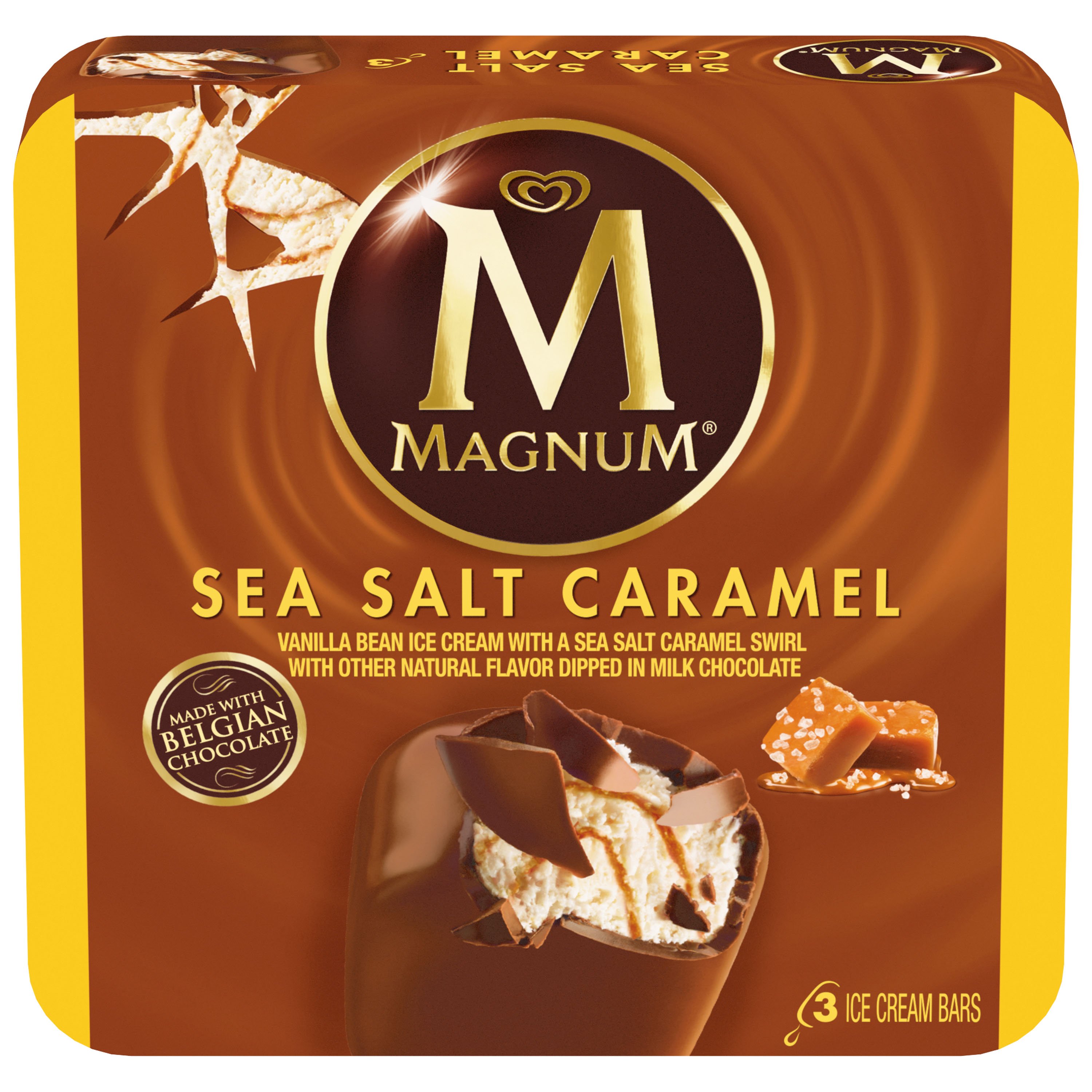 And australia late in 2018. Beyond our sea salt caramel flavor, explore the full range of magnum ice cream bars and discover an expansive world of pleasure. Magnum double sea salt caramel ice cream combines velvety vanilla ice cream with swirls of sea salt caramel and chocolate pieces, all encased in magnum cracking milk chocolate. These magnums are crafted with chocolate made from our high quality sustainable cocoa, which is fully.